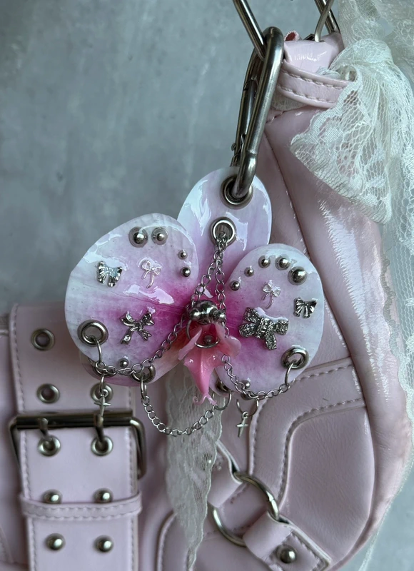 darkfairy, y2k, 2000s, alt goth, orchid keychain, orquidea, pierced flower, pierced orchid, emo, grunge, archive aesthetic, handmade accessory, bag charm, rave fashion, hello kitty, harajuku, punk, postapocalyptic, dolls kill, disturbia, demonia, new rock, pink bag with charm, orchid chain charms, accessories, bolso rosa, vintage, named collective, fierce, japan, witch, magic, trend, rock, trendy, cyber, 00s, retro, baddie, killstar, princess, queen, tiktok, skater, sk8, indie, coquette, coquettestyle, lolita, fest, techno, festival outfit, fashion, avantgarde, custom, esthetique, esthetic, vibes, euphoria fashion, esoteric, whimsical, witchery, witchy, fairy, fairycore, fripe, friperie, thriftshop, alternative subculture, 1616mode, cybergoth, mystic, occult, fairy goth, George Gina & Lucy, epoxy charm, one of a kind angelcore opium gift llavero orquídea indiesleaze angel fall avantgarde piercing piercings