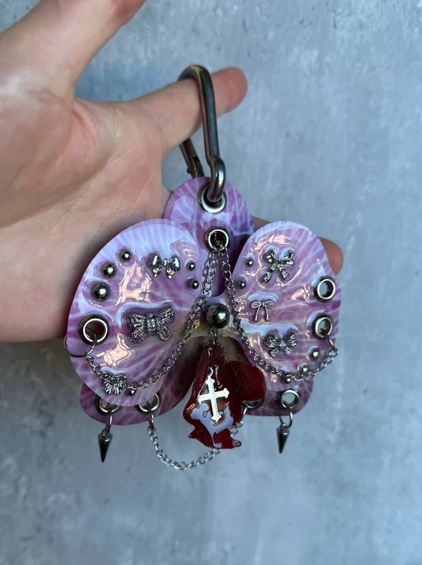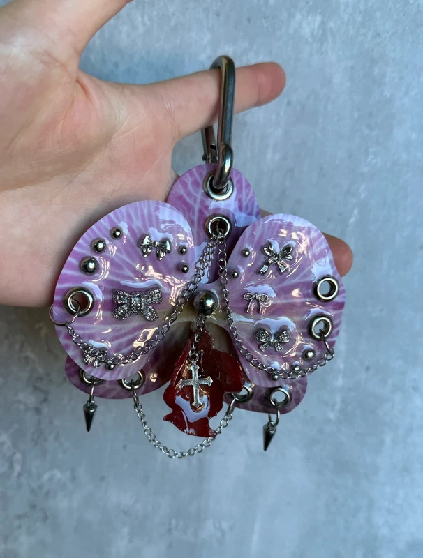 darkfairy, y2k, 2000s, alt goth, orchid keychain, orquidea, pierced flower, pierced orchid, emo, grunge, archive aesthetic, handmade accessory, bag charm, rave fashion, hello kitty, harajuku, punk, postapocalyptic, dolls kill, disturbia, demonia, new rock, pink bag with charm, orchid chain charms, accessories, bolso rosa, vintage, named collective, fierce, japan, witch, magic, trend, rock, trendy, cyber, 00s, retro, baddie, killstar, princess, queen, tiktok, skater, sk8, indie, coquette, coquettestyle, lolita, fest, techno, festival outfit, fashion, avantgarde, custom, esthetique, esthetic, vibes, euphoria fashion, esoteric, whimsical, witchery, witchy, fairy, fairycore, fripe, friperie, thriftshop, alternative subculture, 1616mode, cybergoth, mystic, occult, fairy goth, George Gina & Lucy, epoxy charm, one of a kind angelcore opium gift llavero orquÃdea indiesleaze angel fall avantgarde piercing piercings